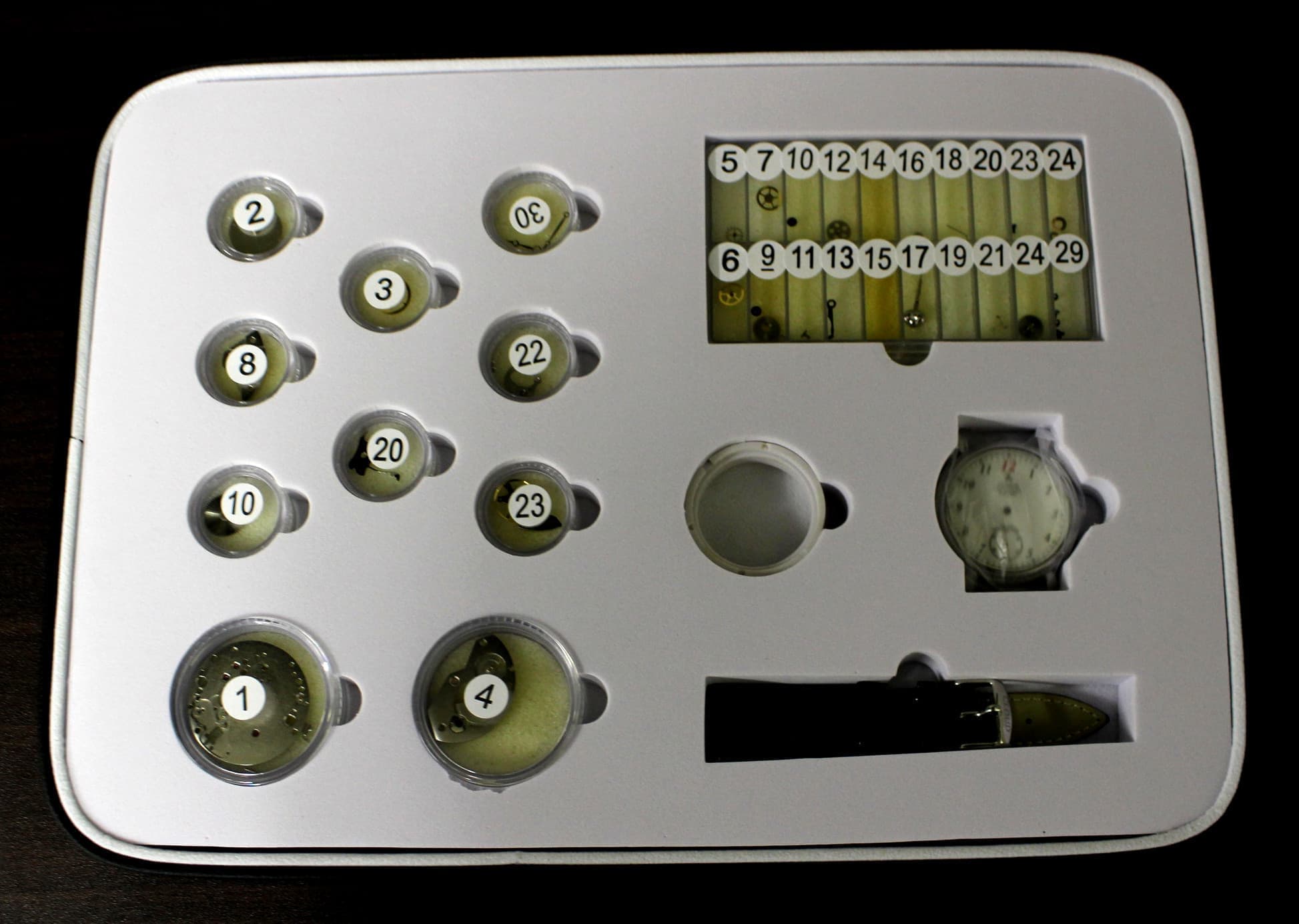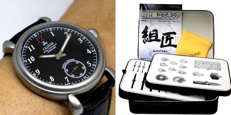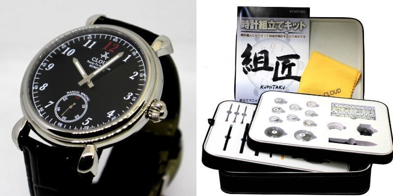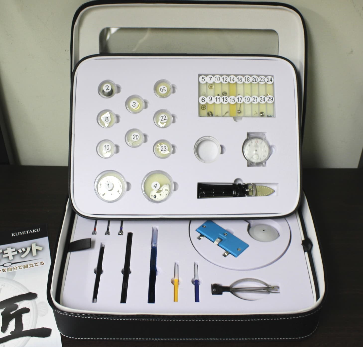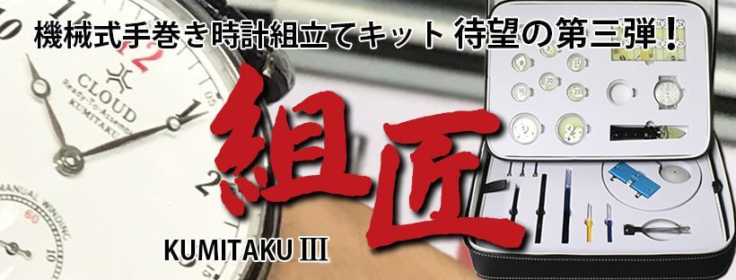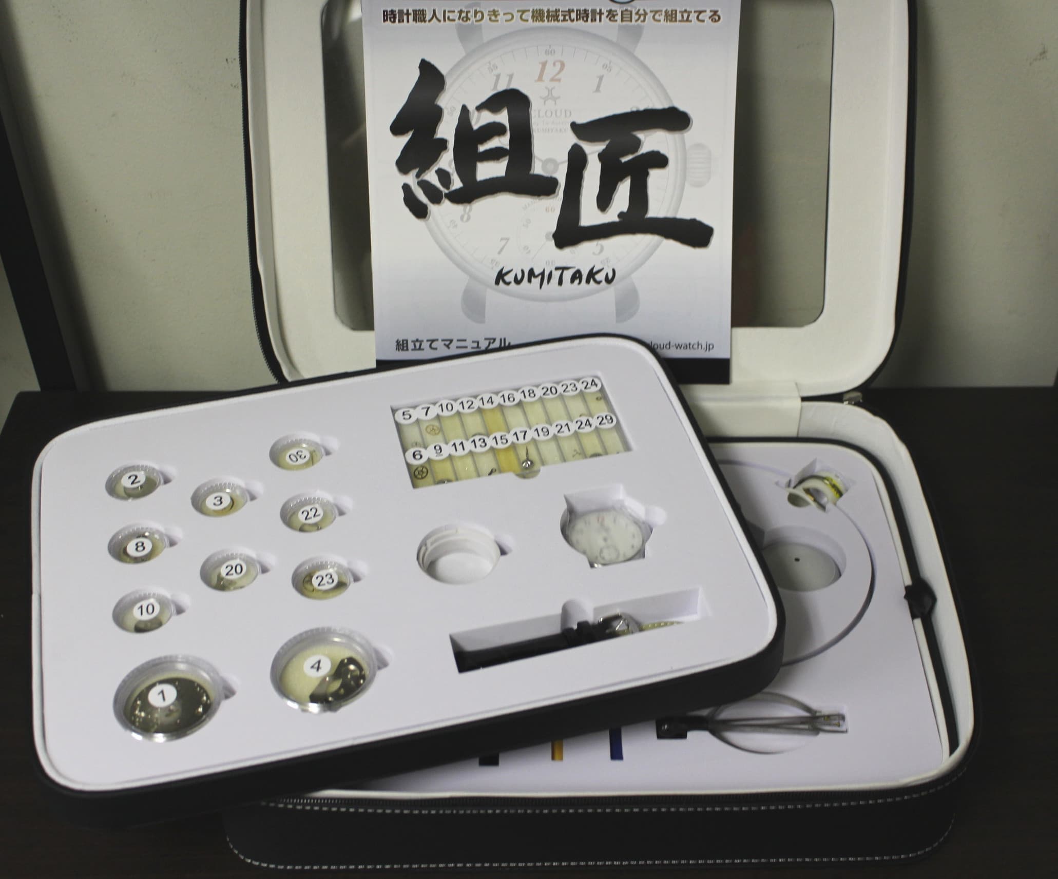 時計組立てキット【組匠KUMITAKU】は、実際に手巻き時計のパーツを1から組み上げていく機械式時計の組立てキットです。組立に必要な工具も一式セットされていますので 、購入後すぐに組立て作業に入れます。そして完成後は普段使いの時計としてご使用いただけます。また万が一組み立てられなくても、時計修理専門会社である当社【(株)クラウドトレーディング】が完全バックアップいたしますのでご安心ください。いままで機械式時計の組立に興味があった方や仕組みを知りたい方、ご自分で組み上げた時計をご使用になりたい方等には打って付けのキットです。ぜひトライしてみてください。