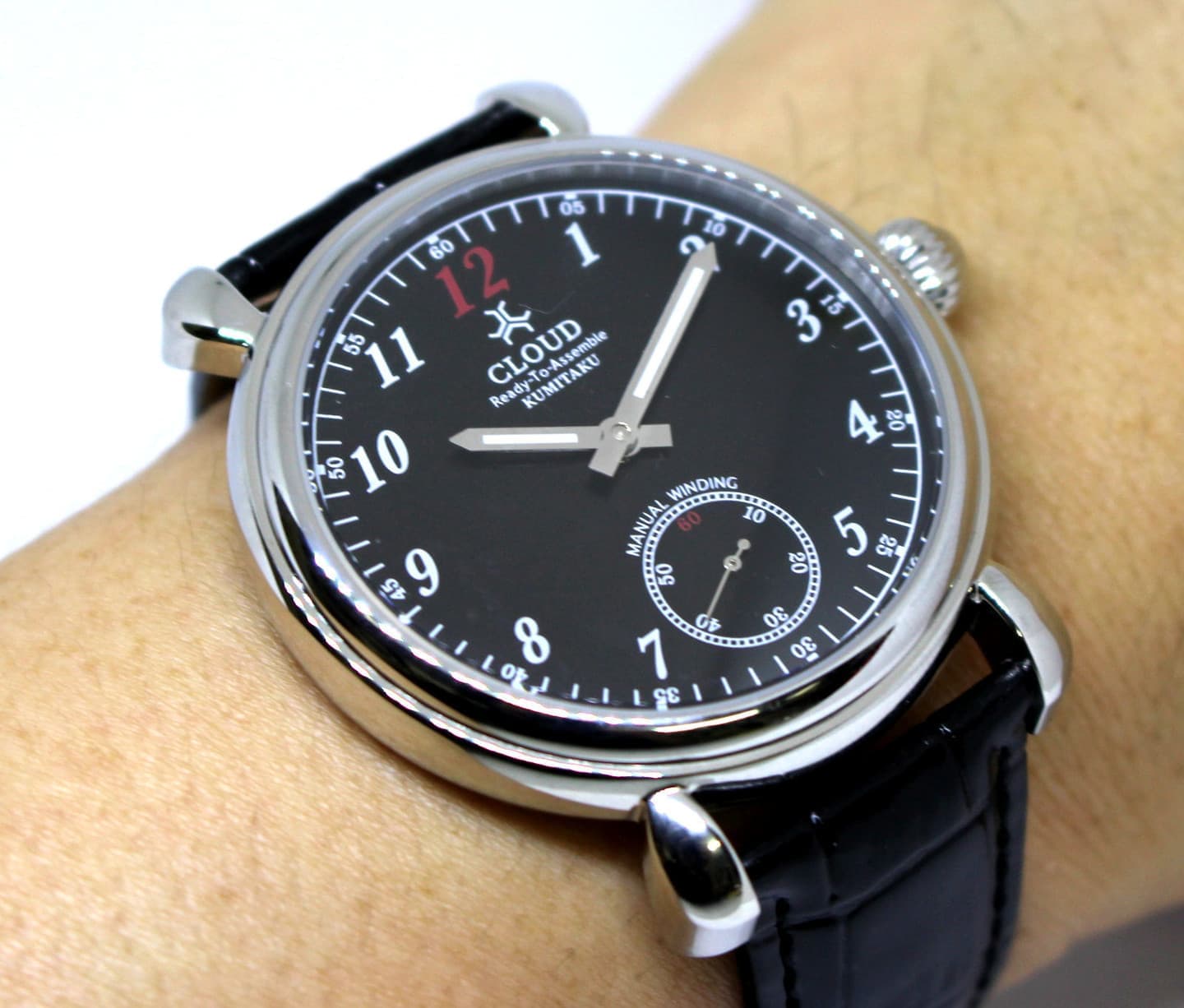 ぜひ自分で組み立てた手巻き時計を腕にする醍醐味、そしてその喜びをお楽しみください。(時計本体サイズ、直径45mm(リューズ含まず)×厚み10mm×ラグ幅22mm)