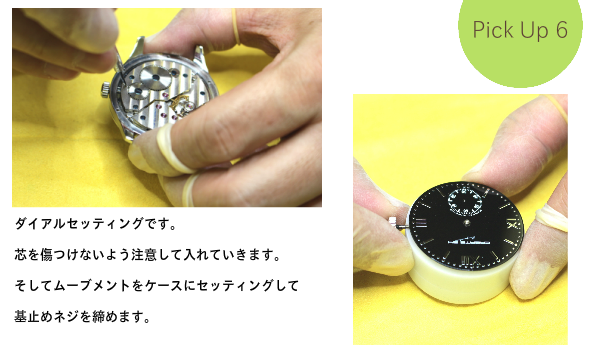 針セッティングの場面です。針同士が当たらないように慎重に作業を進めます。